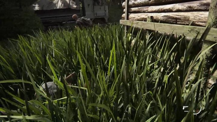 After the fight, jump to the other side of the fence - you will run into a large group of mutants. Again, you can use the tall grass to crawl around and perform stealth kills on the targets.