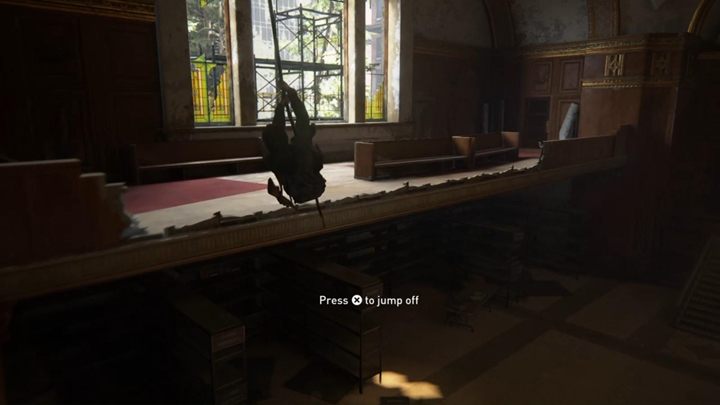 Eventually, you will reach the tank and fill the container with fuel. Now move the trolley to the center of the synagogue so you can jump to the upper floor. Use the elevator to swing and jump to the other side. From here, jump out the window to get out of the building.