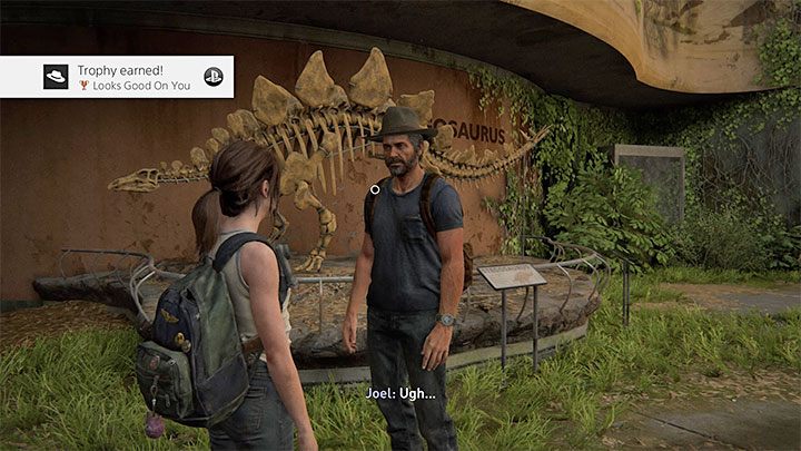 As a curiosity it is worth adding that Ellie can find another hat for herself in the other part of the museum. Joel, on the other hand, will hang the hat he received on a large skeleton when he gets to the upper floor of the building. However, none of these actions are related to the trophy anymore.