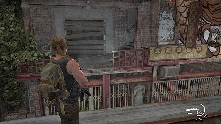 Reach the street shown in the picture above. Abby can enter the stores located on the left and right. If necessary, you can break the glass to get inside. One of them has an "indestructible" shutter, but we will get inside it in a different way.