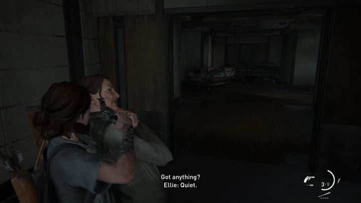 After the cut-scenes, you will see another flashback with Ellie. Go to the hospital and search the rooms. Your goal is to get to the bag where you will find a recorder. Watch more cut-scenes.