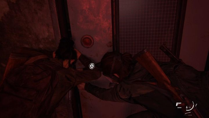 Head towards the end of the tunnel. You'll find a locked door that you can open with Ellie's help. This action will make a noise, so if there are still enemies around, you need to be vigilant not to be attacked during this interaction.