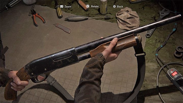 You get the shotgun during the Hostile Territory stage and the way of reaching it is described on the Shotgun - how to get it? page. As with the Ellie's shotgun, the ideal use for this weapon is to fight living opponents and powerful monsters at short distances. The shotgun's base damage is high but this can be further increased with one of the upgrades. You can also unlock the passive ability to produce incendiary shells.