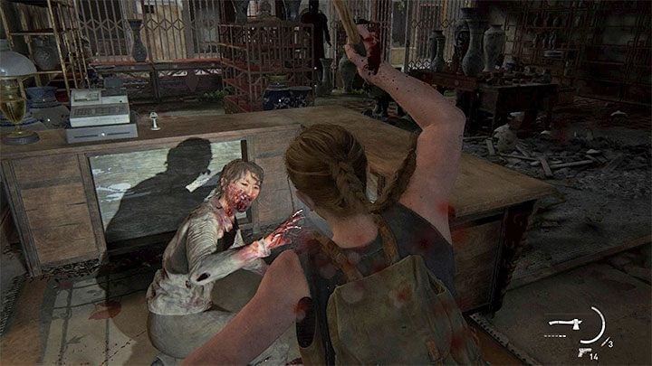 Ellie can pick up a variety of melee weapons found in the game world, e.g. baseball bats, hammers or machetes. It is best to look for weapons that have a large number of uses, i.e. about six. We also advise you to get Make melee upgrades passive ability that allows you to repair and strengthen your current weapon (once).
