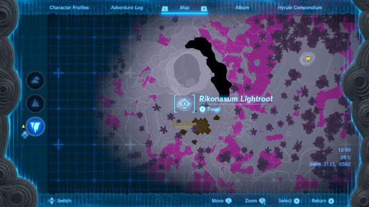 Next to the Rikonasum Lightroot there's a stone staircase. Stand under the stone ceiling and Ascend. After breaking through the ceiling you'll be in the Korok Forest.