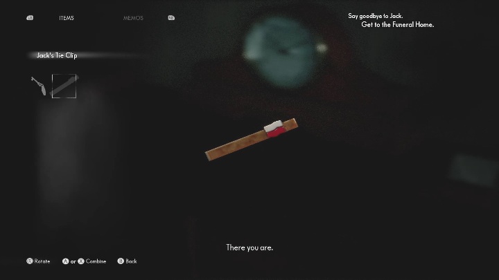 After getting the tie clip, you can go to the funeral home. All you have to do is leave the apartment and go down the stairs. Make sure you've checked everything, though, because you won't be able to return to this location.