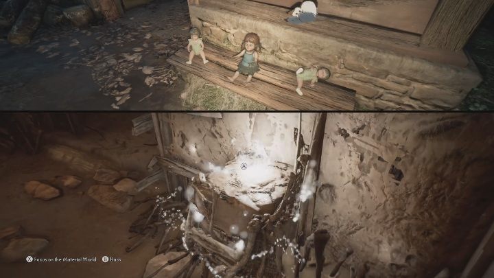 Pick up the doll that lies on the left side of the garage. You need it to rebuild memory shards and gain energy.