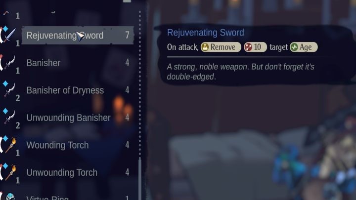 Other weapons, like the Broom, can influence the age of the victim. Most of the enemies in a younger form (information in the Bestiary will indicate the age for a specific form) become much weaker and lose a significant amount of HP. However, you cannot decrease the age indefinitely - the minimum value is 1.