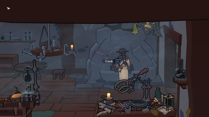 Cooking is available from the beginning of the game. You have to use the stove - one can be found in the first location of the Abandoned House, another is in the Pier. Each cooking attempt costs you 1x Log, which turns into 1x Charcoal. Just like with other crafting elements, you can experiment with ingredients, find recipes in the game world or create new dishes yourself - if you guess a recipe, it will be added to the recipe list. Dishes you find can also be a clue to creating new ones - read their description and you will often guess what ingredients should be combined. You don't need to research the ingredients for cooking; the order of the ingredients does not matter.