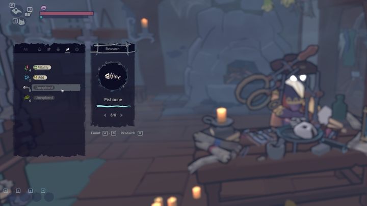 Researching is an important part of the gameplay in The Serpent Rogue. They only apply to potion ingredients. Without researching the materials, you won't be able to use them for making potions. However, this does not apply to the materials used in the other activities: creating tools and making dishes. The materials are plants, animal fragments and other organic matter.