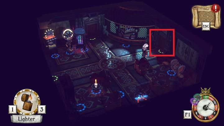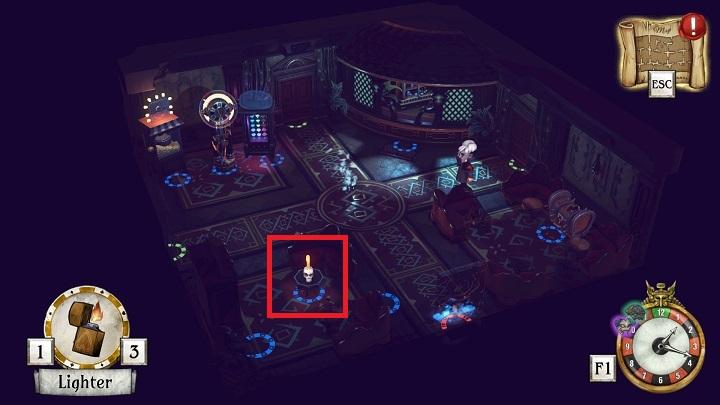 After beginning this stage, the game assigns you a new starting point, meaning that you do not have to look for another winding key. Your task is to acquire the lighter. It will allow you to light the candle, located in the starting room.