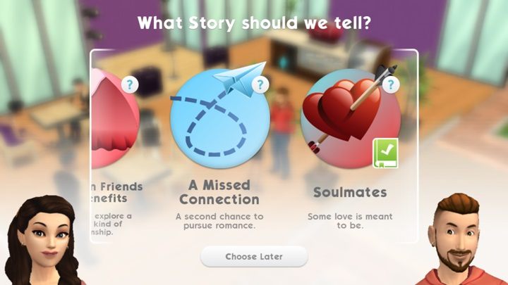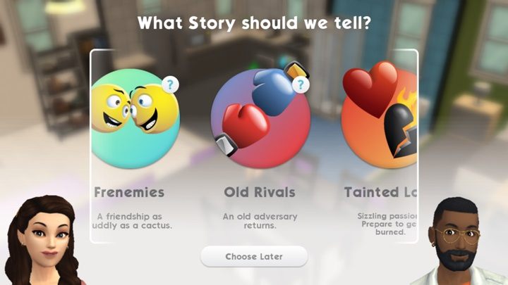 In The Sims Mobile, as in any game of the series, you can date your sims and develop relationships. Additionally, there's also the story option. When you enter level 2 of a relationship, you can select the story of that relation. This will determine the kinds of interactions the sims will be allowed to perform. If your characters are antagonists, they will hate each other and keep fighting. If they're soulmates, they will go to dates and it will all be hunky-dory.