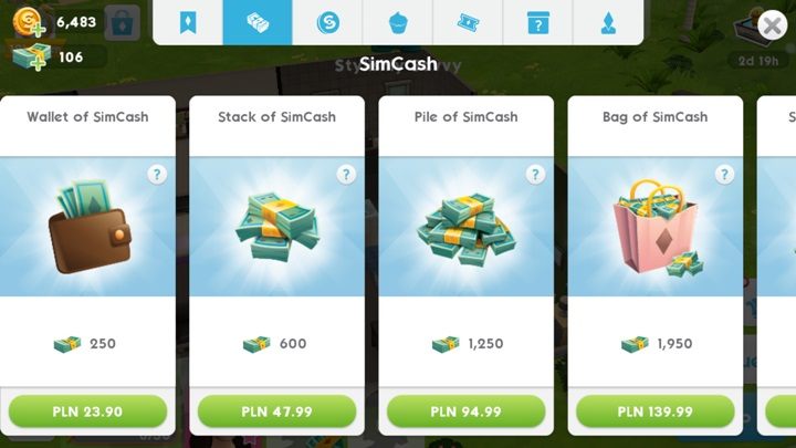 The cash is difficult to make during the gameplay. You get it for achieving experience levels, watching ads and completing missions. You can also buy simcash for real money. SimCash can buy you some house utilities, as well as clothes and hairstyles. It also allows you speed your sim up or create additional slots for new sims.