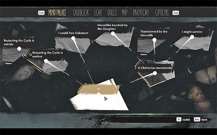 Besides examining the pedestals, you can also use the Mind Palace for the last time. Due to the fact that a new hint has been unlocked, you can make the last connection - A way out and Oakmont is trapped by Cthygonnaar. This unlocks I could free Oakmont deduction.