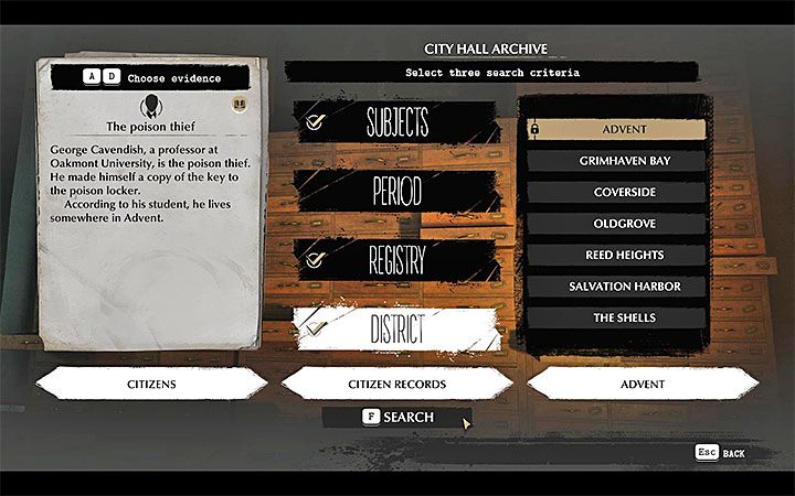 Your new task is to establish where does Professor Cavendish live, and so you need to visit the Oakmont City Hall in the Advent district. Upon arriving there, talk to the front desk clerk - you may be irritable or not. Let's go to the archive room.