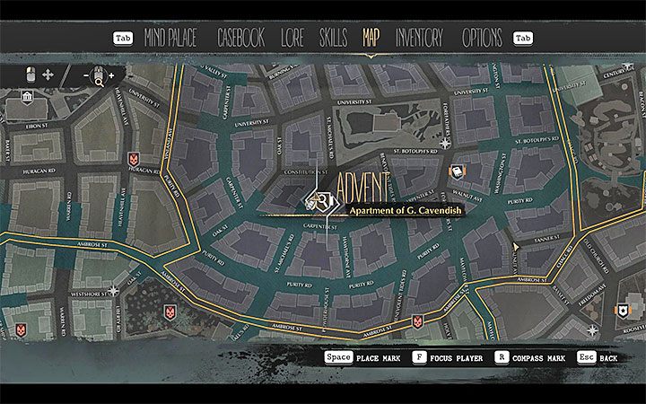 Apartment of G. Cavendish is located in the Advent district. This is Michael's Road, between Carpenter Street and Constitution Street. The entrance to the residential area is close to the flooded part of the street. Go to the second floor. Take Tag from the Baby Carriage. Use melee weapons to destroy the padlock and get into the apartment ? 2.