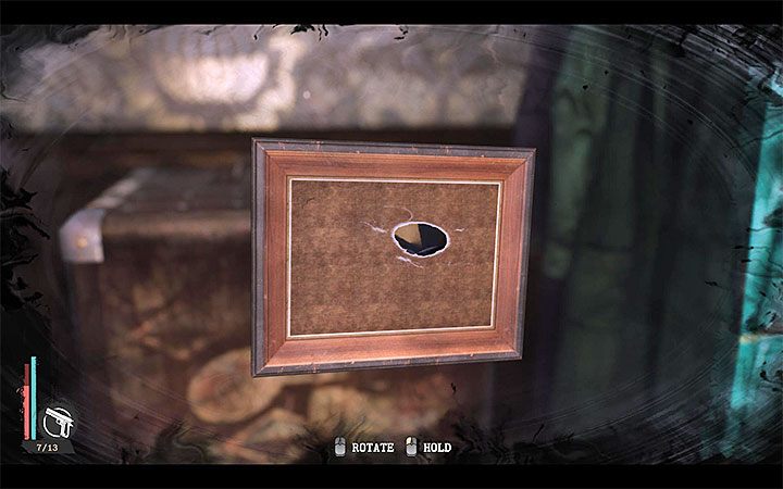 - In the same room, look at the frame without a photo. Activate the Mind's Eye (screenshot above) and look at the picture from the past showing the burning pictures.