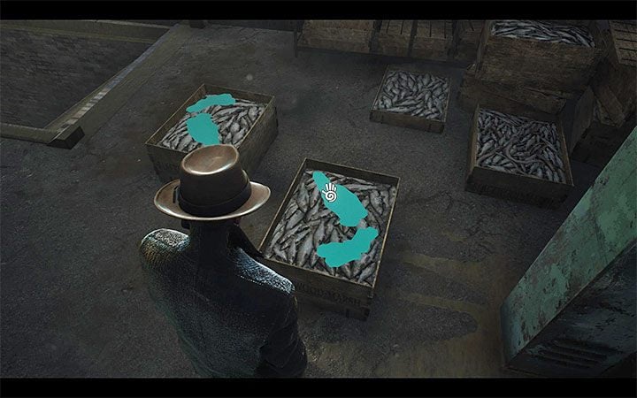 In the warehouse you need to get to five boxes of fish - an example is shown in the screenshot above. Interact with them. You will another pieceof evidende: I dosed the fish with the ricin.
