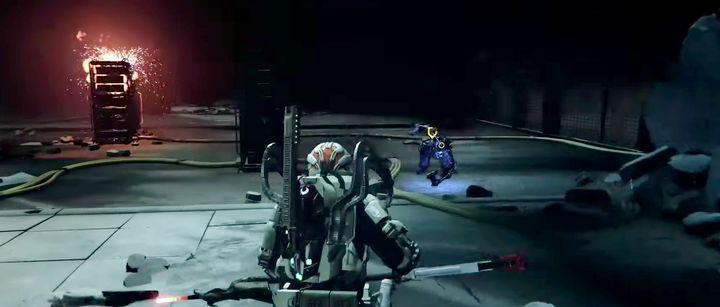 Note that the suit that was abandoned is still working. From time to time it will attack you with a remote and precise strike or with area of effect attack. The AoE attack may damage your opponent as well. You must be on the move at all times to avoid taking unnecessary extra damage.