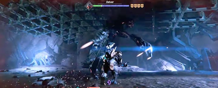 The boss has three health bars. In the first stage of the fight, attack his legs or the entire lower body. During this time, the enemy usually makes 1-3 strikes with his paws, which can be blocked. Sometimes he buries himself in the ground to attack from below - it is enough to move around the arena to avoid his attacks (the third attack with a jump is slightly more aggressive and it is worth jumping in order to evade it).