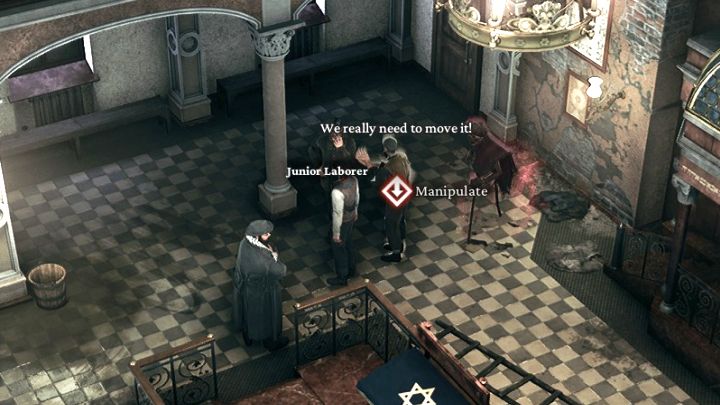 - Upyr should appear next to the worker, unlocking a manipulation option. 2 Heart Dimension points are required for this action. Sucessful manipulation unlocks the option to talk to the rabbi again.