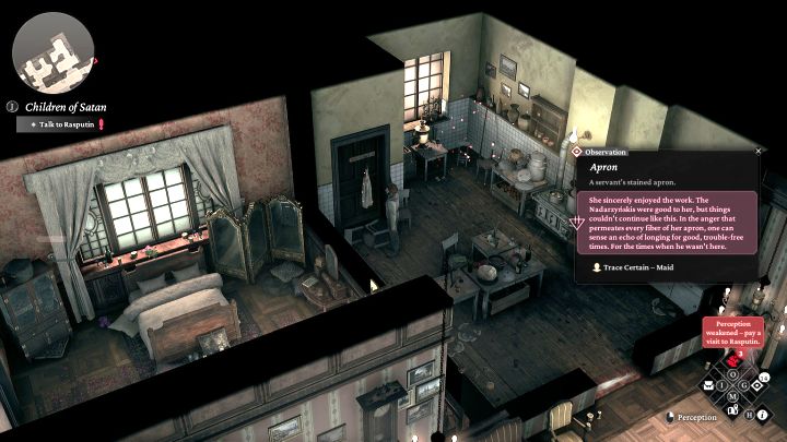 - There are new optional observations to find in Nadarzynski House - these are Suitcase, Sofa, Empty Bottles, Pipe, Glass of Wine, Ashtray, Salt on the Doorstep, Apron, Broom, and Medal. After examining these observations, A Servant's Worries and A Colorful Group of Cultists conclusions will be unlocked.