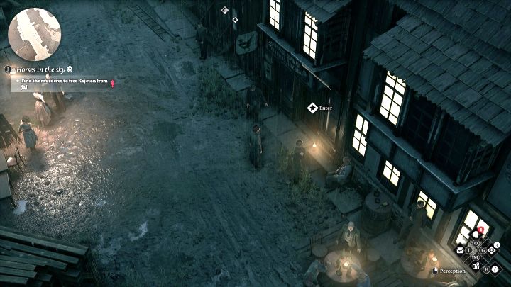In the afternoon, visit the building in the southwestern part of the district, next to the Krajewskis' apartment. You should encounter a point of interest marker (screenshot above). Enter the building to complete the Urban Legends quest and receive the sketch.