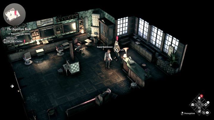- Once you are in the hotel lobby, you will be greeted by the concierge. During the conversation with Ligia, you can immediately head to the soiree room or ask her for the opportunity to look around the hotel. Vision of a Salutor observation will be unlocked.