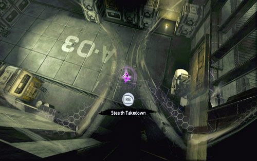 The further road will take you to the right. Move along the walls or the ceiling to avoid getting involved in a fight.