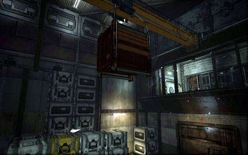 While holding down Y, point the camera onto the crate handing from the ceiling. Move it using the Web Rush.