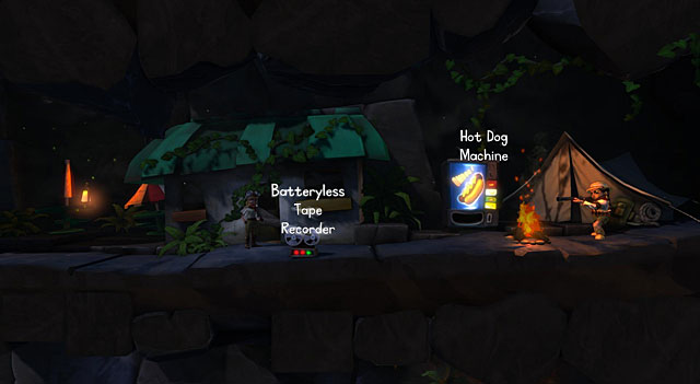 Get past the ZOO entrance and one of your characters will be taken away by a monster that's being chased by a hunter. Go one level below to reach the hunter's camp. She will throw away a Batteryless Tape Recorder. Pick it up.