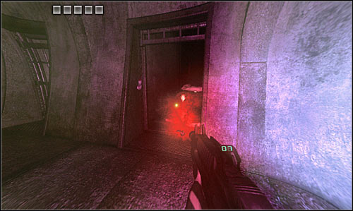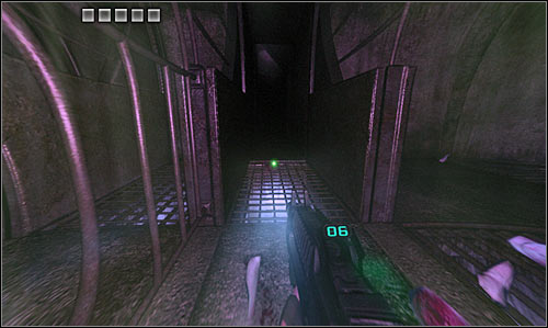 Notice that you've been rewarded with Eyeshine ability. Basically you can now see in the dark and you can activate this mode by pressing the upper arrow or the Q key. I would strongly recommend using Eyeshine here, because otherwise you would have some serious problems finding the exit. Start moving forward and choose a tunnel to your right [#98]. Kill the first mutant before moving on.