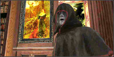 Enter the room near the painting with angels on it. Take the Red Dragon Chalice and take it to the opposite room (the one next to the castle painting) and place it on a stand that reads "Arthur".