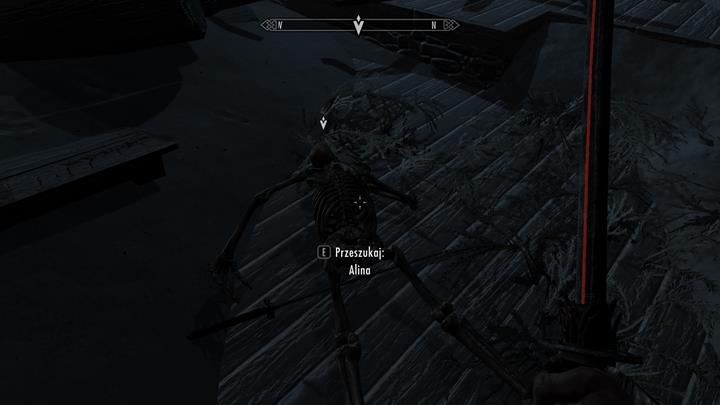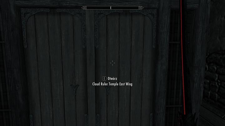 The skeleton of the woman is found on the floor. Search it and you will hear the voice again. This time your task is to find a weapon - go down the stairs and go through the door to Cloud Ruler Temple Armory. Inside, you can find a weapon, Glenroy's Akaviri Katana. Take it and go to Cloud Ruler Temple West Wing.