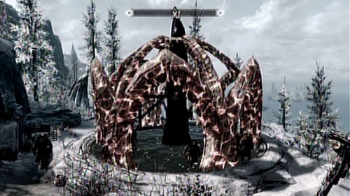 After defeating the beast, approach the disenchanted obelisk to learn a new Word of Power - North Wind. Afterwards return to the Skaal Village and tell the old shaman what has happened.