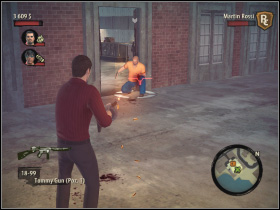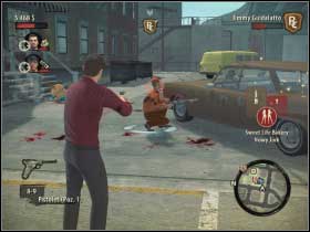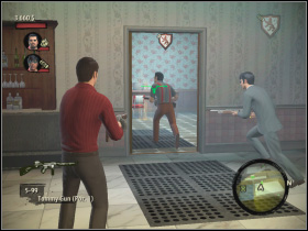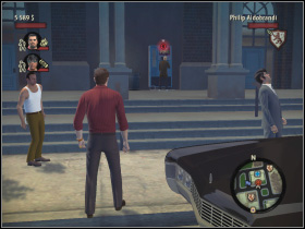 Walk upstairs and talk to Michael [069]. From now on the apartment is your safehouse. You will always find guns and ammo here. In addition once you enter, the police will stop chasing you. You will also find your mob car nearby.