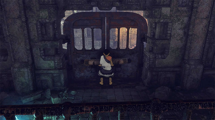 Use the command issuing mode to point Trico towards the vat. He should start jerking the chain again and thanks to this, the nearby gate will open for a moment. Wait for the gate to be opened and run into the next chamber.