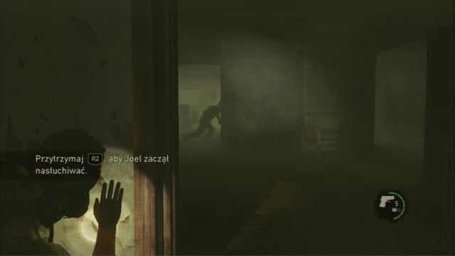 It is enough if you press and hold down the square, for Joel to strangle the zombie. Remember about crouching each time you sneak up to the enemy. You do that by pressing the circle, or the button for listening out (R2).