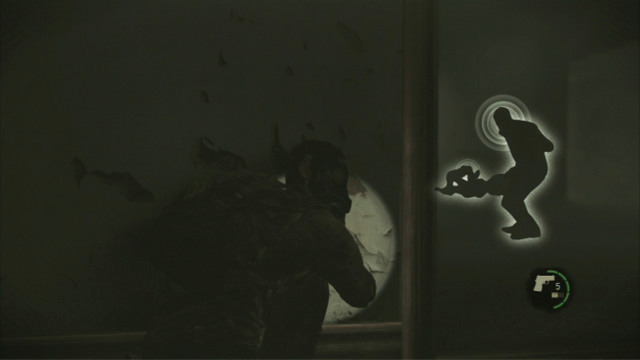 A bit further, you will bump into a man pinned down to the ground by a pile of debris. His gas mask broke so, there is no other thing to do but shoot the poor chap. In order to aim, press and hold down the L1 button, and press R1 to squeeze the trigger. You can replenish ammo by collecting a nearby clip.