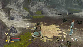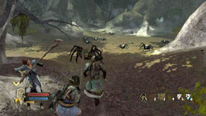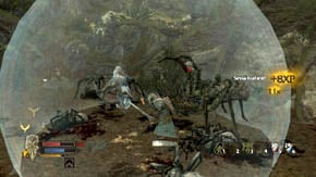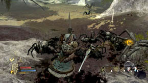 After a while the larger glade will swarm with ordinary spiders but some bigger ones will also appear here. The latter are more dangerous, because they can catch your character in the net shooting from a distance. That is why it's best to attack these enemies from close up. You will need to deal with a swarm of small spiders and three larger ones.