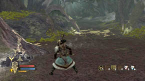 Watch out, however, for the big spiders. Apart from shooting out a net at you they can also catch you with their limbs. To free yourself you must quickly press a button shown at the bottom of the screen. Once you've finished them off, search the next glade. Some mushrooms are to be found to the right of the rock (on the right and left), while a few steps further, under the rock on the right there's a heap of items.