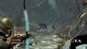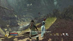 A little further, near the end of the stream two archers will attack you. You will bring them down easily. By the path leading right there's also a heap of items. Run following the path and you'll reach the glowing portal. Use it. You'll watch a cutscene and receive a new objective of the main quest. Meanwhile the game will be saved automatically.