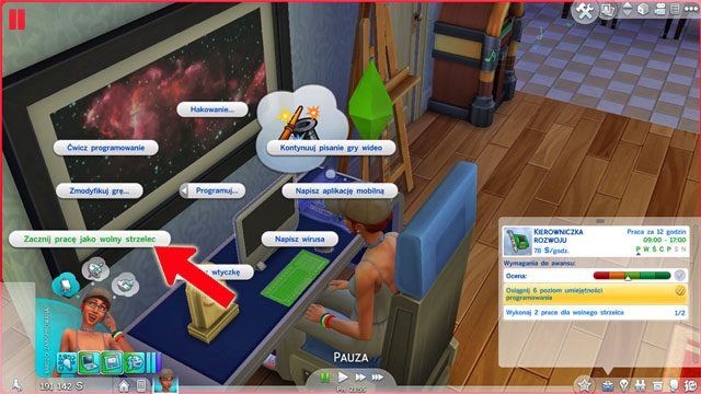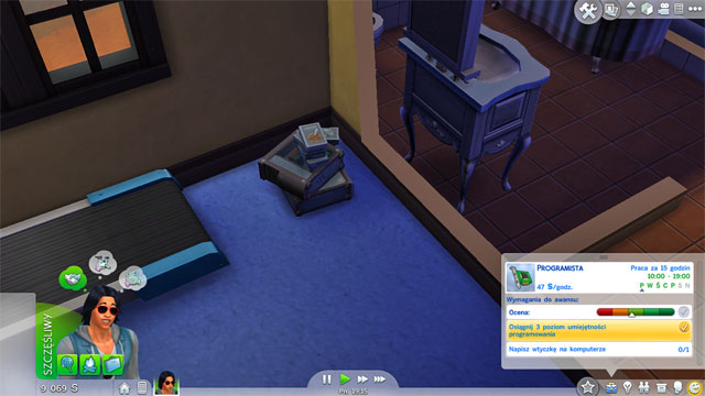 If you will choose the second branch you will become The Next Big Thing? (7 B). From now on your daily training should be focused on Programming and you have to develop this skill to the 8th level as soon as you can. You also have to earn 250 Simoleons on royalties for mobile apps which you have to write (select an adequate option on your computer). It will take a few hours and you will receive a reward for finishing your work.
