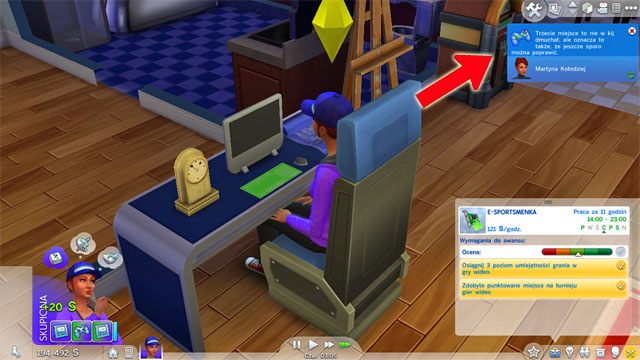 If you will choose the first branch you will be promoted to the eSports Competitor (7 A) position where your daily quest is not just using a computer in any way but instead you have to focus on playing video games. You need to develop the new skill called Video Gaming. To do that you can as use books (as always) or a phone, a computer or a gaming mat and just play any video game. You have to reach the 3rd level of this skill and you also have to be on a scored place in a tournament. To do so you have to click on a computer and select "Play a game..." > "Participate in a tournament" option. Notice reports in a right upper corner of the screen. If you have found an information according to which you have scored any place in a tournament it means you accomplished your task. If not, you have to try again.