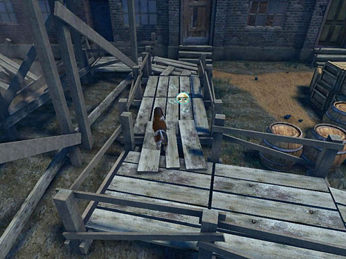 Go down the boxes-crate, opposite to the pub entrance