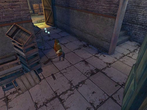 Climb on stairs and click on an icon of dog's nose: Toby will catch a scent.
