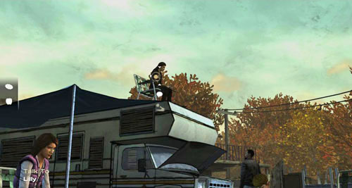The last person you can talk to is Lilly, who is sitting on the roof of the RV. If you sided with Kenny earlier, Lilly will not accept the food ("Lilly is still angry."), however, you can convince her to take it later ("Take it anyway.") or not ("Fine. Don't Eat."). Even if you give her the food, it won't make your relationship any better. However, if you earlier sided with Lilly, she will accept the food with a smile and thank you.