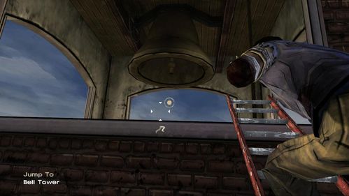At some point then ladder breaks up and it starts to folds up. Quickly point the cursor to the edge of the Bell Tower and jump there.