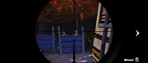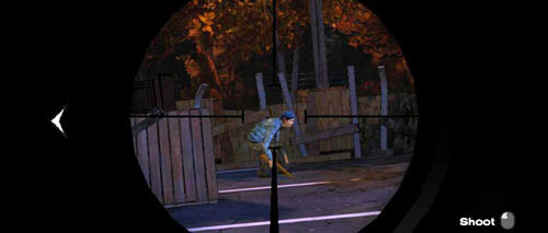 (4) After the cutscene lean out to the right. Kill the two bandits hiding behind the cover (you can only see their heads). Wait until one runs out to the left and shoot him. After killing the three bandits there will be the next cutscene. Clementine will be safe.