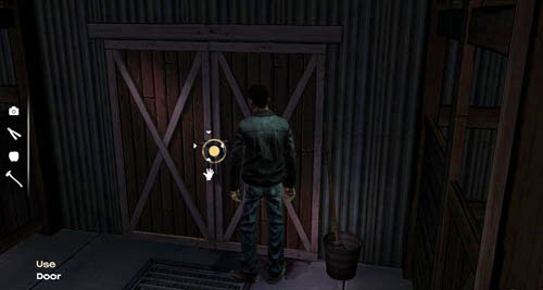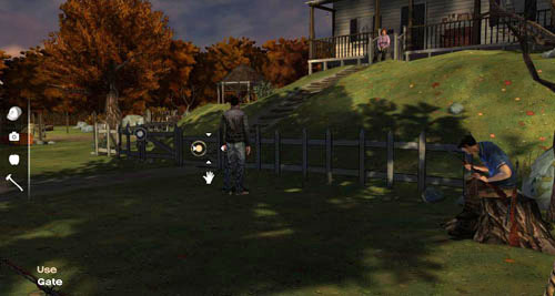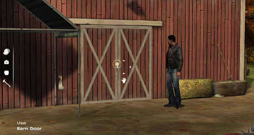 Now go in the opposite direction, to the background of the screen, to the barn. Use the wooden Gate to open it and then go to the right, to the gazebo. Again, you will be able to talk to Lilly. You can tell her what happened to Jolene (depending on whether you or Danny shot her, there will be "I shot a woman" or "Danny shot someone." options, and Lilly will remember that). The rest of the answers do not matter, nor do the questions you can ask Lilly. After that go left until you get to the barn door. Open the Barn Door to go inside.